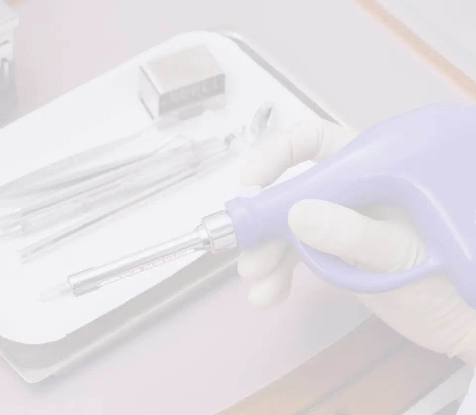表面麻酔を塗布して感覚を鈍らせてから、 細い注射針でゆっくり麻酔を