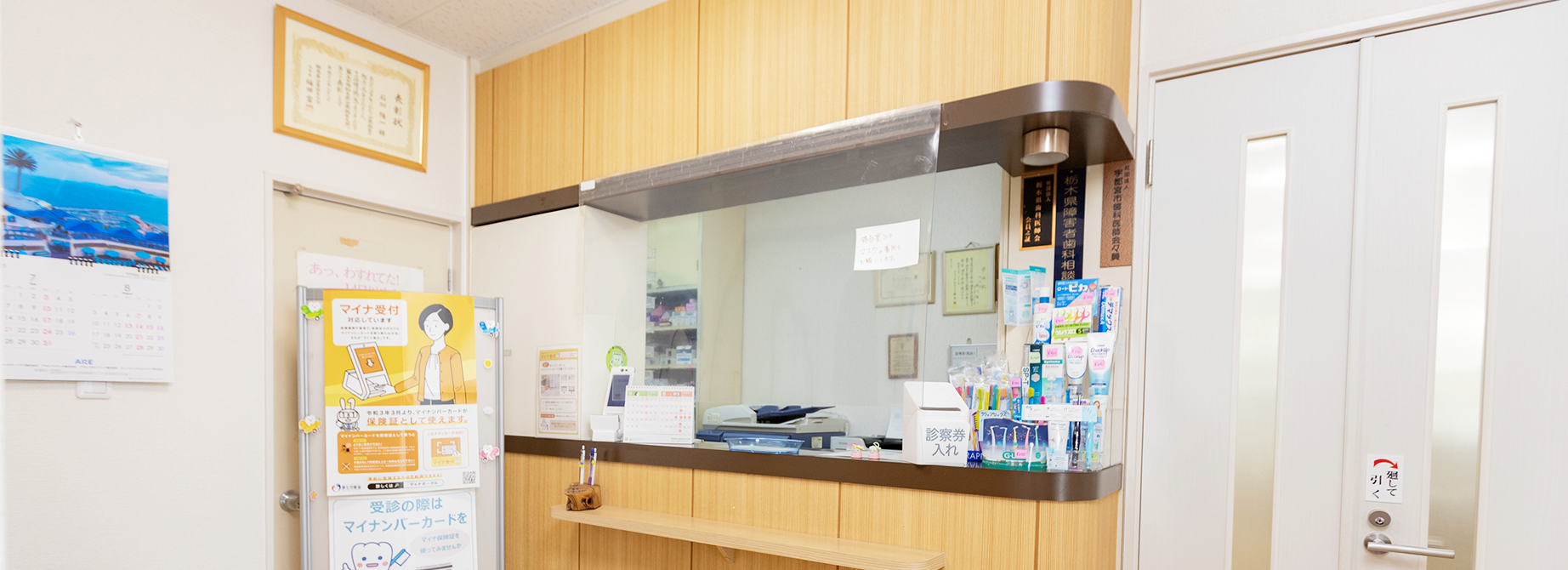 当院は、JR宇都宮線・宇都宮駅の東口からバスで9分の場所にあります。宇都宮バイパス沿いにあるため、公共交通機関やお車はもちろん、自転車でも便利に通っていただける立地です。 道路を挟んだ斜め向かいには郵便局がございますので、初めてご来院される方はそちらを目印にしてお越しください。敷地内には6台分の駐車スペースもあるため、お車でお越しの場合は雨の日でもほとんどぬれずに院内までお入りいただけます。 1980年の開院以来、当院はこの宇都宮市峰で患者さまの歯の健康をサポートしてまいりました。お子さまからご年配の方まで、幅広い年代の患者さまのお悩みに対応できますので、お口のことでお困りの際は気兼ねなくご来院いただければと思います。