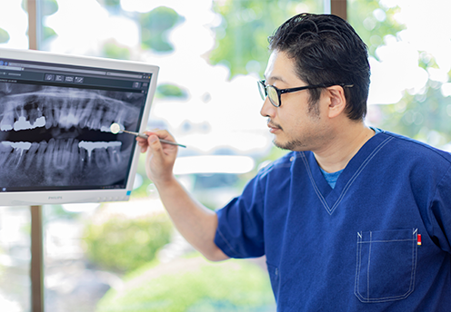 必要な場合を除いてレントゲン撮影を行っておりません。レントゲン検査以外に、歯科医師による問診や、むし歯・歯周病の重点的なチェックを行うことで、適切な治療へとつなげてまいります。
