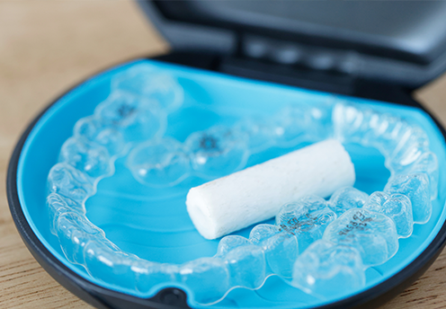 ノンクラスプデンチャーは、歯ぐきの色に合わせた歯科用樹脂素材を用いた部分入れ歯です。保険適用外ではありますが、金属バネを使わないため、入れ歯だと気づかれにくく、自然な見た目を目指せます。また、樹脂特有の柔らかさにより、違和感なくお使いいただけます。